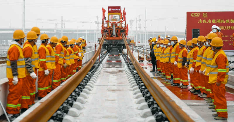 On December 16, 2021, China Railway No.4 Engineering Group began the stage of laying the upper structure of the track.