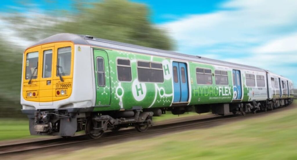 Другой поезд, водородный гибридный поезд HydroFLEX, разработанный Porterbrook, будет продемонстрирован в День транспорта COP26 в среду, 10 ноября.