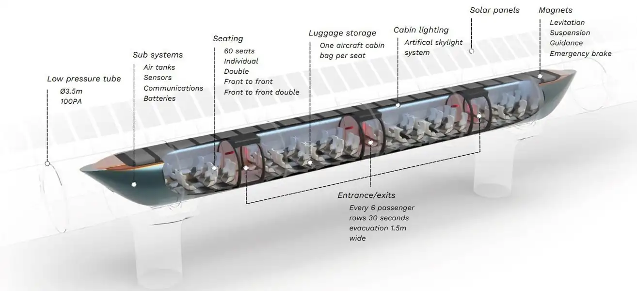 Это нидерландский проект вакуумного транспорта на магнитной подушке, который развивает систему высокоскоростных поездок со сменой полос движения внутри трубы.