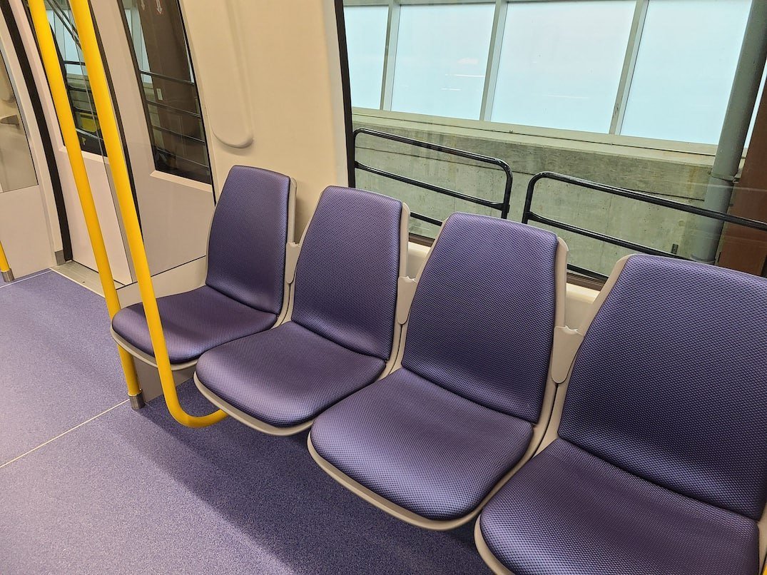 Новые поезда также имеют особенности дизайна интерьера: гибкую конфигурация сидений и стоячих мест, большой видеоэкран над дверями для программируемого отображения информации, а также световые индикаторы и звонки на дверях для пассажиров с нарушениями слуха или зрения.