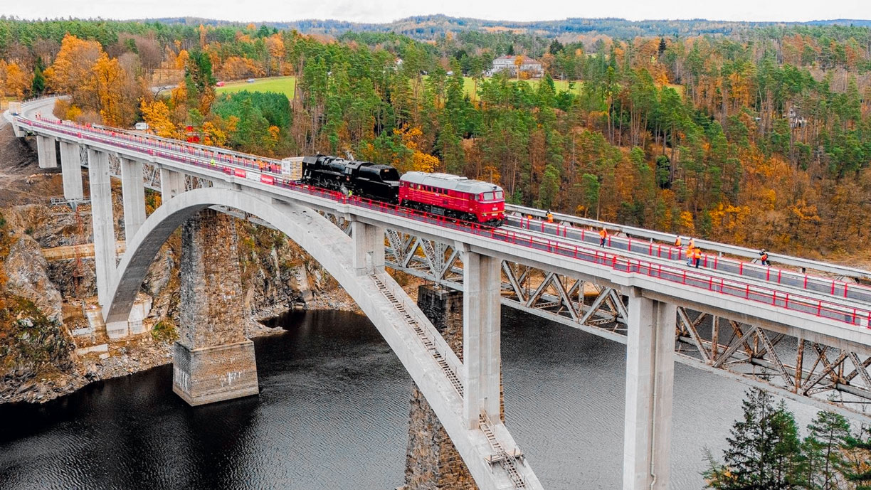 Будівництво тривало з січня 2022 року, а загальна вартість склала 685 млн крон (≈ €27 млн). Висота нового мосту становить 69 метрів, а довжина аркового прольоту досягає 156 метрів.