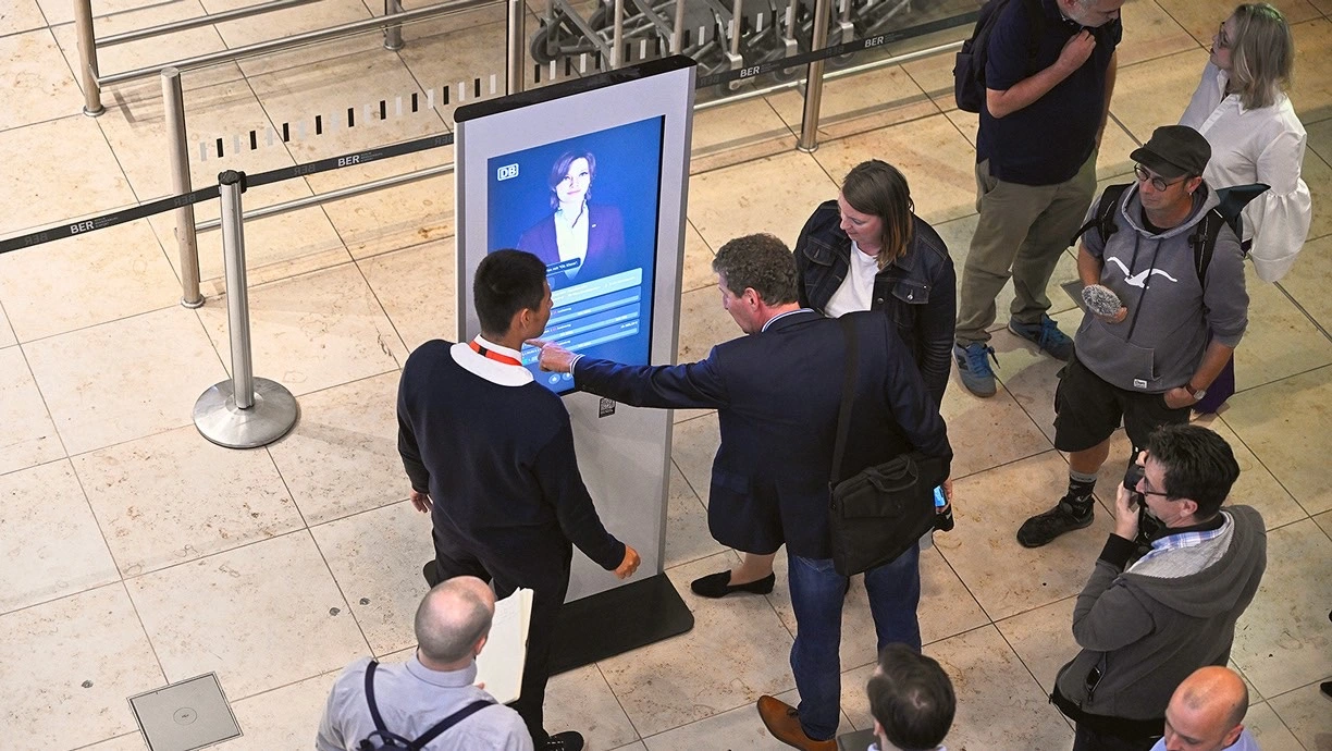 Deutsche Bahn встановила в аеропорту Берлін — Бранденбург інтерактивну колону з екраном, динаміками та мікрофоном. На дисплеї відображається віртуальний помічник Кіана (Kiana), що працює на основі великої мовної моделі.