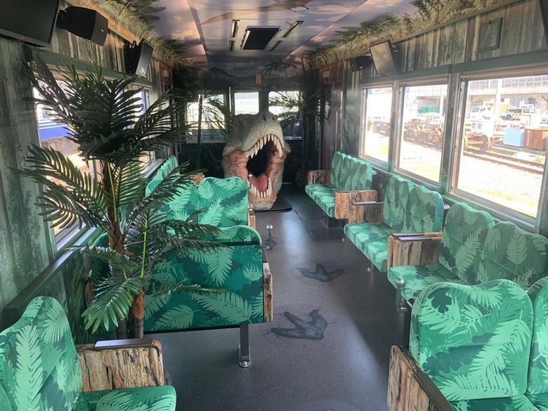 Зовні вагони обклеєні вінілом із зображенням динозаврів, що мешкали в Азії та Америці. Інтер’єр першого вагона відображає часи динозаврів, а інтер’єр другого оформлений у вигляді місця розкопок із копіями скам’янілостей.