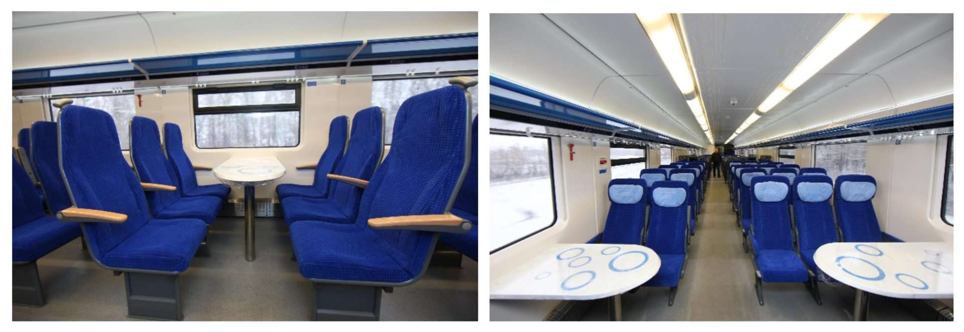 Електропоїзд має вагони першого, другого та туристичного класів, може перевозити 609 пасажирів, зокрема й пасажирів у інвалідних візках. Будь-якої пори року в усіх приміщеннях, включаючи тамбури та перехідні міжвагонні зони, забезпечується комфортна температура. В одному з вагонів обладнаний бар. Для буфетного обслуговування пасажирів застосовано систему харчування за аналогією з цивільною авіацією.
